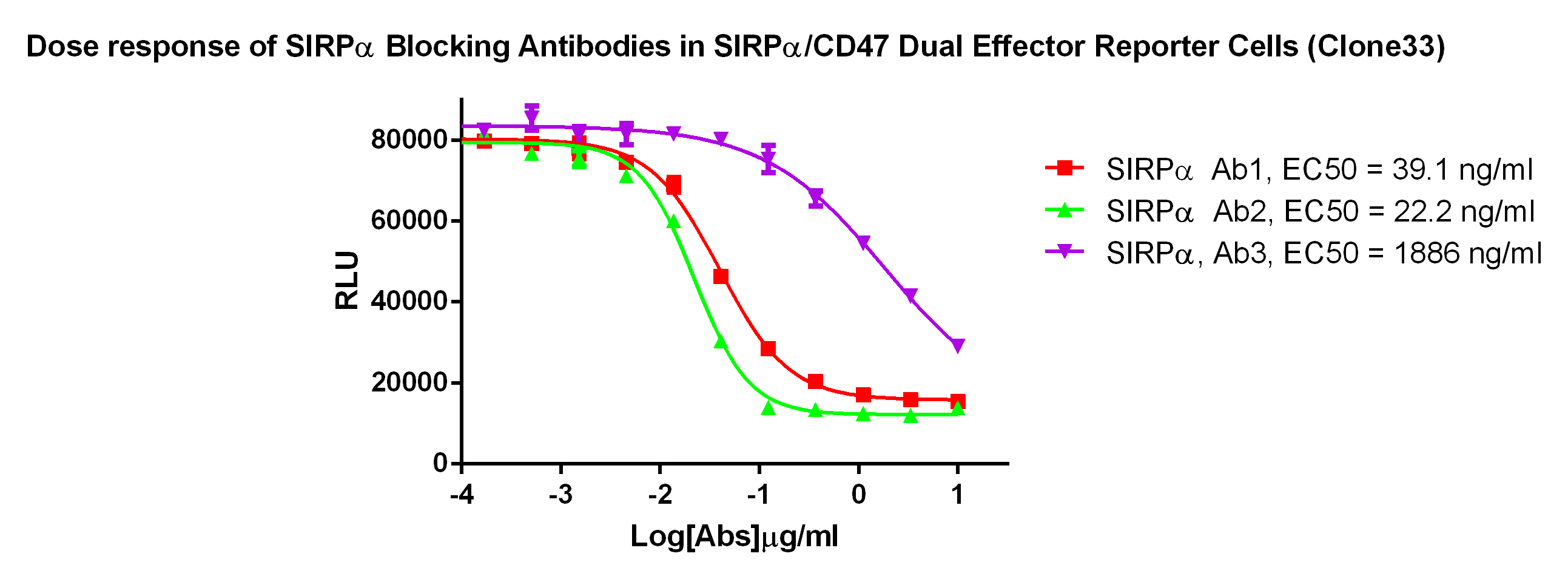 Figure 1. Dose response of SIRPα Blocking Antibodies in SIRPɑ/CD47 Dual Effector Reporter Cells.