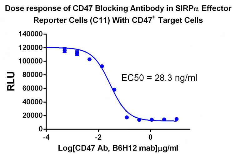 Figure 3. Dose response of CD47 Blocking Antibody in SIRPɑ Effector Reporter Cells(C11) With CD47+ Target Cells. |