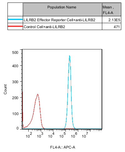 LILRB2 Effector Reporter Cell 報告基因藥靶模型很好的模擬了體內 LILRB2 的信號轉 導過(guò)程,原理見(jiàn)下圖所示。![]() ![]() Figure 1. LILRB2 Effector Reporter Cell 模型原理圖 |