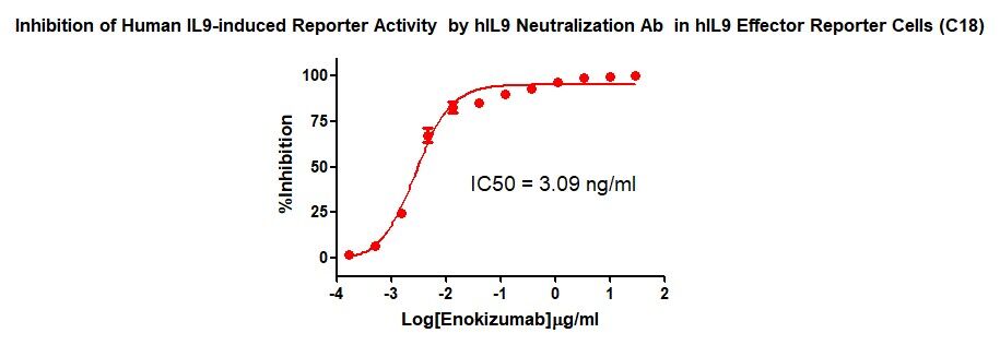 Figure 4.Inhibition of Human lL9-induced Reporter Activity by hlL9 Neutralization Ab in hIL9 Effector Reporter Cells (C18). |