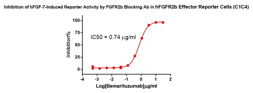 Figure 2. Inhibition of hFGF-7-Induced Reporter Activity by FGFR2b Blocking Ab in hFGFR2b Effector Reporter Cells (C1C4). |