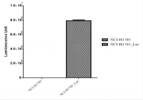 The number of Luminescence signal is 585±22(Mean±SD) on NCI-H1703 cells while 8211069±204759(Mean±SD) on NCI-H1703-Luc cells.