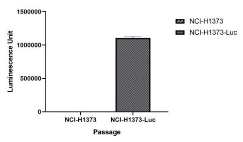 Figure. Stablity test results. NCI-H1373-Luc cells showed at least 32 passage stability with similar luminescence unit.