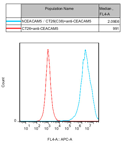 IV. Representative Data![]() Figure 1. Recombinant hCEACAM5/CT26 stably expressing hCEACAM5. |