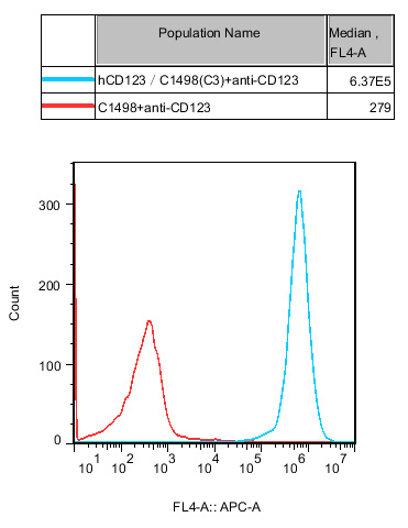 IV. Representative Data![]() Figure 1. Recombinant hCD123/C1498 stably expressing hCD123. |
