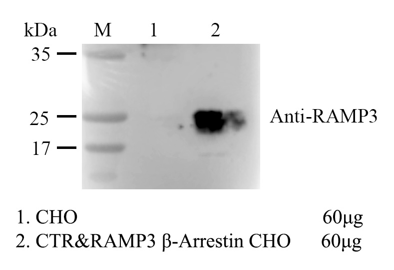IV. Representative Data![]() Figure 2. WB of CTR&RAMP3 β-Arrestin CHO. ![]() Figure 3. Recombinant CTR&RAMP3 β-Arrestin CHO stably expressing CTR. ![]() |