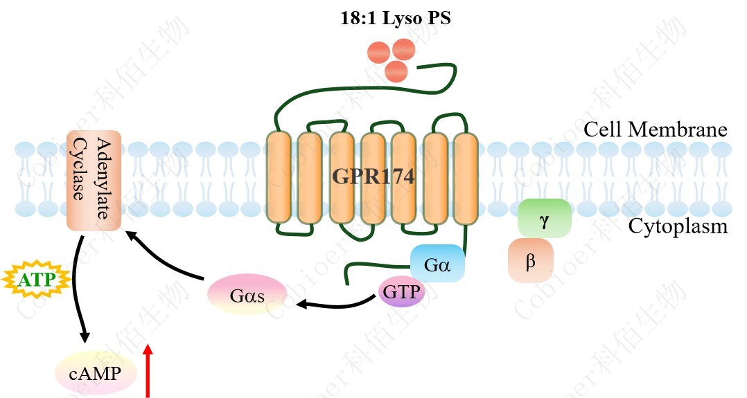 溶血磷脂酰絲氨酸(LysoPS)是細胞膜中存在的少量溶血磷脂,可以在許多組織和細 胞類(lèi)型中檢測到腦,脊髓,結腸和免疫組織的水平相對較高。LysoPS 介導的 GPR174 激 活會(huì )抑制 Treg 細胞發(fā)育和功能以及常規 T 細胞增殖抑制。