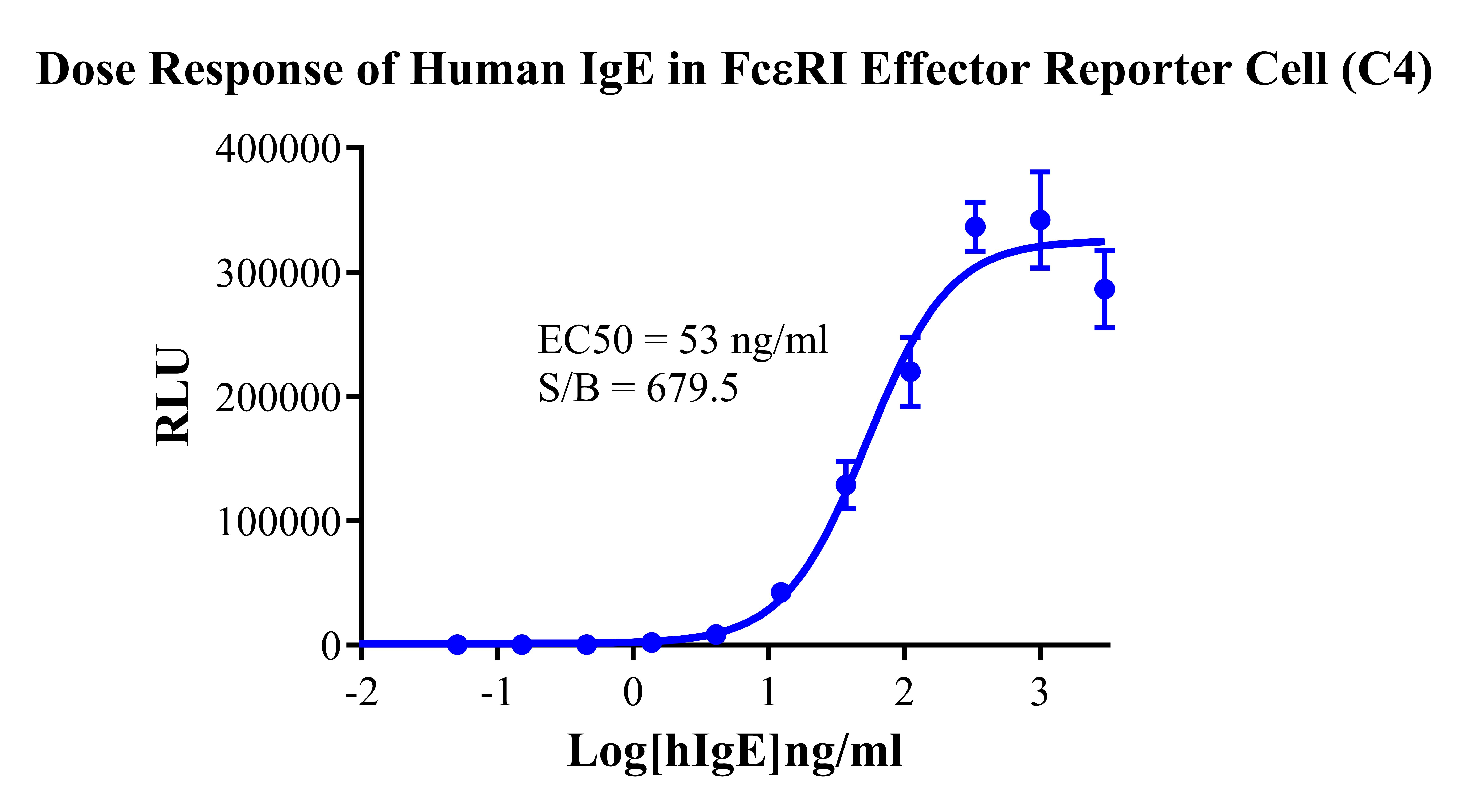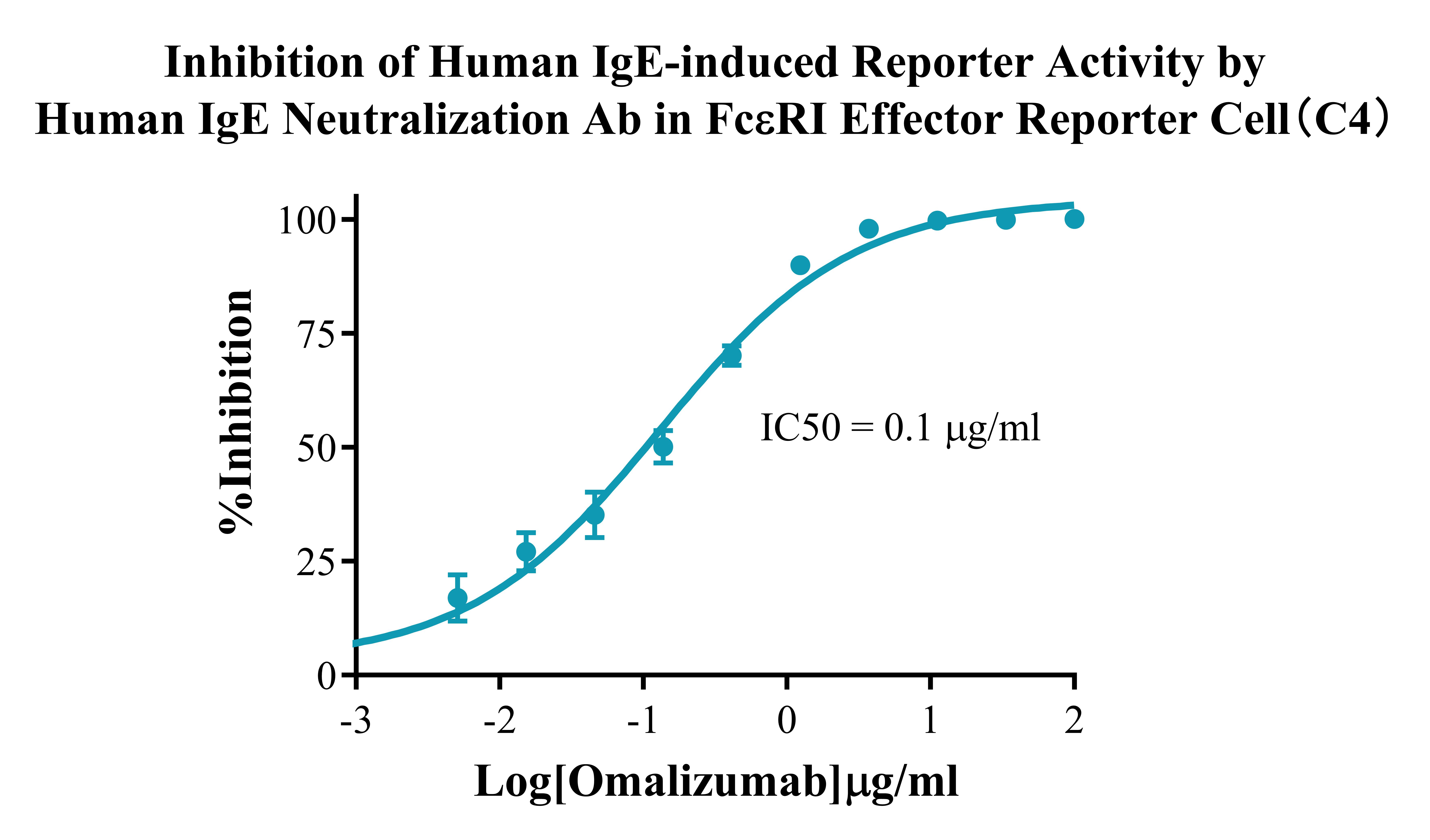 IV. Representative Data![]() Figure 1. Recombinant FcεRI Effector Reporter Cell stably expressing FcεRIA. ![]() Figure 2. Dose Response of Recombinant Human IgE in FcεRI Effector Reporter Cell(C4). ![]() Figure 3. Inhibition of Human IgE-induced Reporter Activity by Human IgE Neutralization Ab in FcεRI Effector Reporter Cell(C4). |