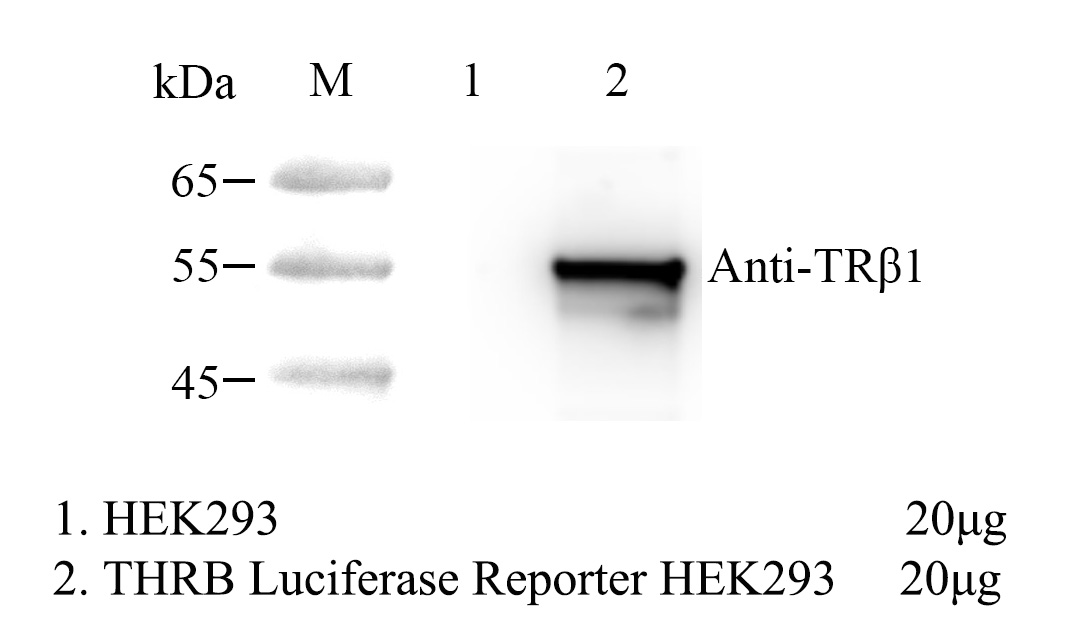 ![]() Figure 2. WB of hTHRB Luciferase Reporter HEK293. ![]() |