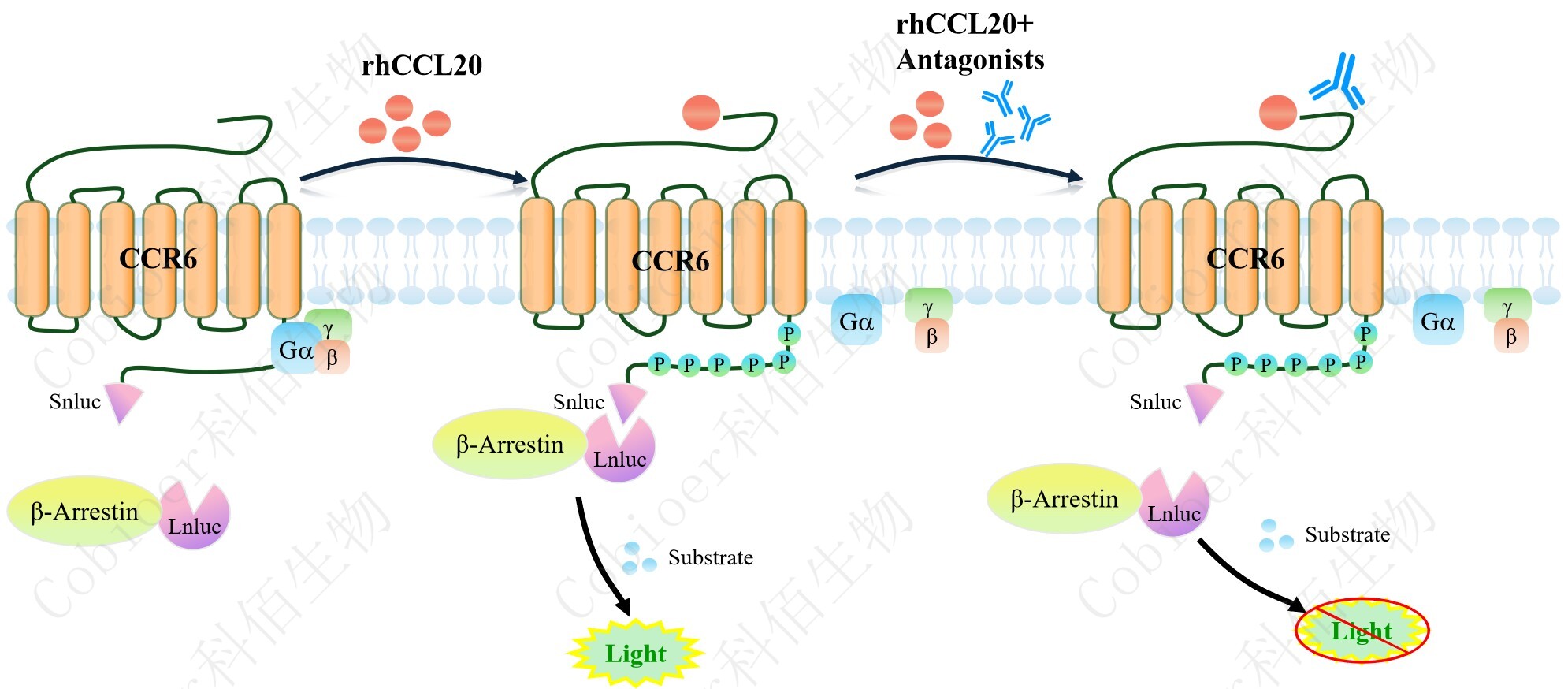 CCR6 β-Arrestin CHO 報告基因藥靶模型很好的模擬了體內 CCR6/β-Arrestin 的信號轉 導過(guò)程,原理見(jiàn)下圖所示。![]() Figure 1. CCR6 β-Arrestin CHO 細胞模型原理圖 |