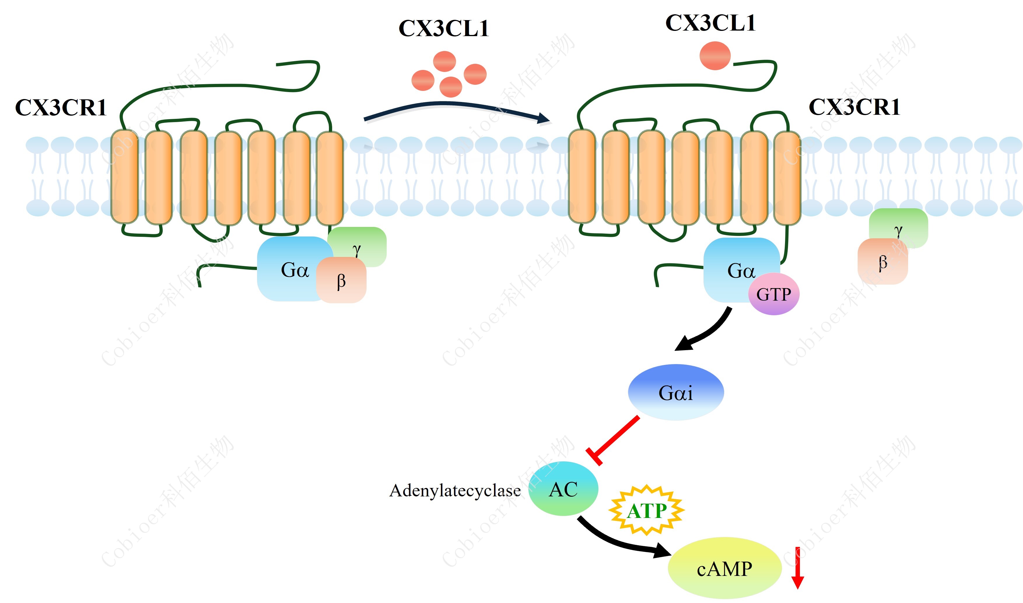 | CX3C 基序趨化因子受體 1 (CX3CR1),也稱(chēng)為分形因子受體或 G 蛋白偶聯(lián)受體 13 (GPR13),是 G 蛋白偶聯(lián)受體 1 (GPCR1) 家族的跨膜蛋白,也是 CX3C 趨化因子受體亞 家族中唯一已知的成員。它是一種高度選擇性的表面受體,通常在單核細胞、CD4 T 細胞、 CD8 T 細胞、NK 細胞和 γδ 細胞上表達。CX3CL1 是一種獨特的趨化因子,可與其唯一受體 CX3CR1結合。 CX3CR1-CX3CL1細胞內信號級聯(lián)負責調節細胞活性,使其達到更高的活性狀態(tài),如存活、遷移和增殖等。 |