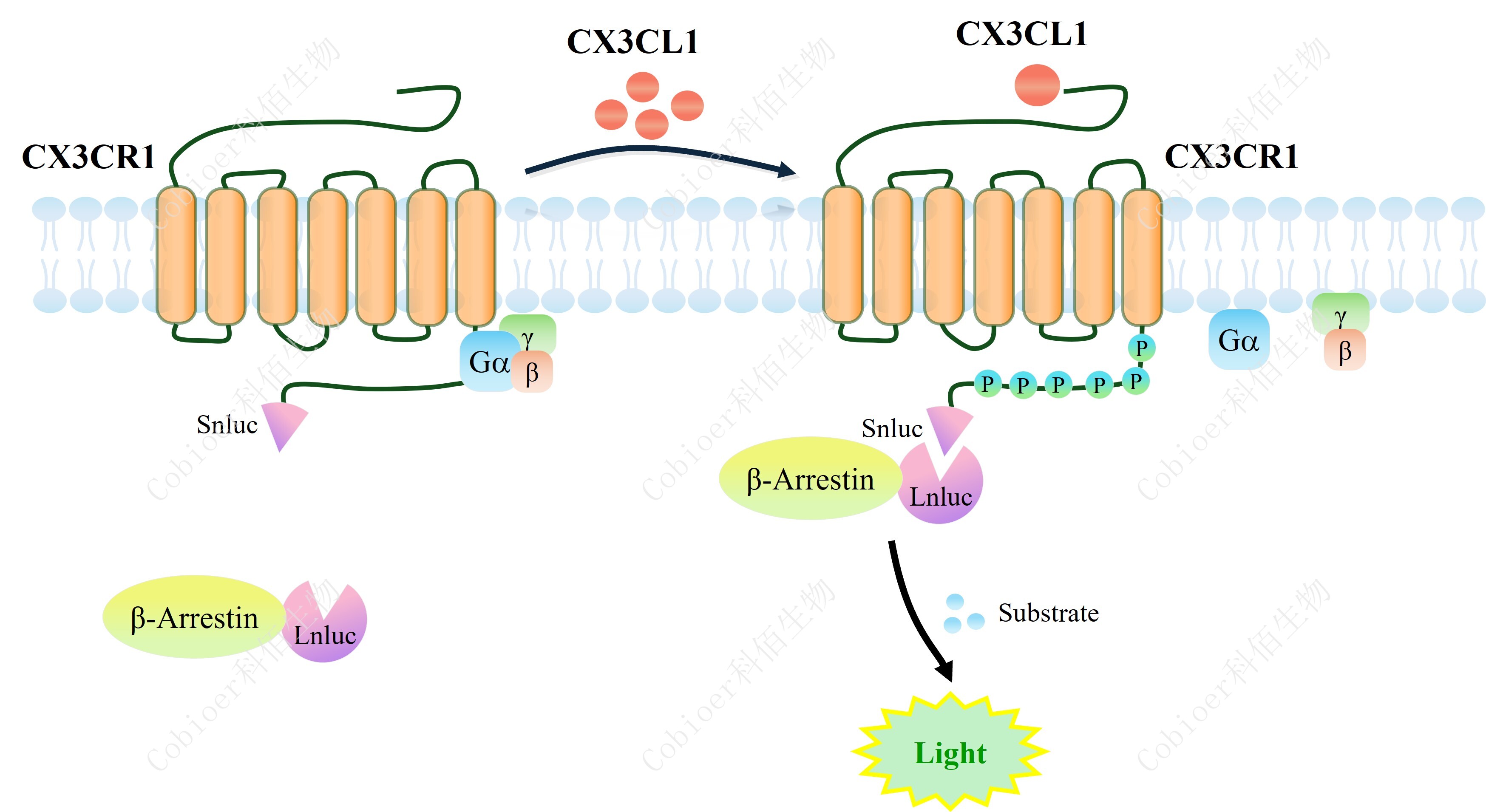 ![]() Figure 1. CX3CR1 β-Arrestin CHO 細胞模型原理圖