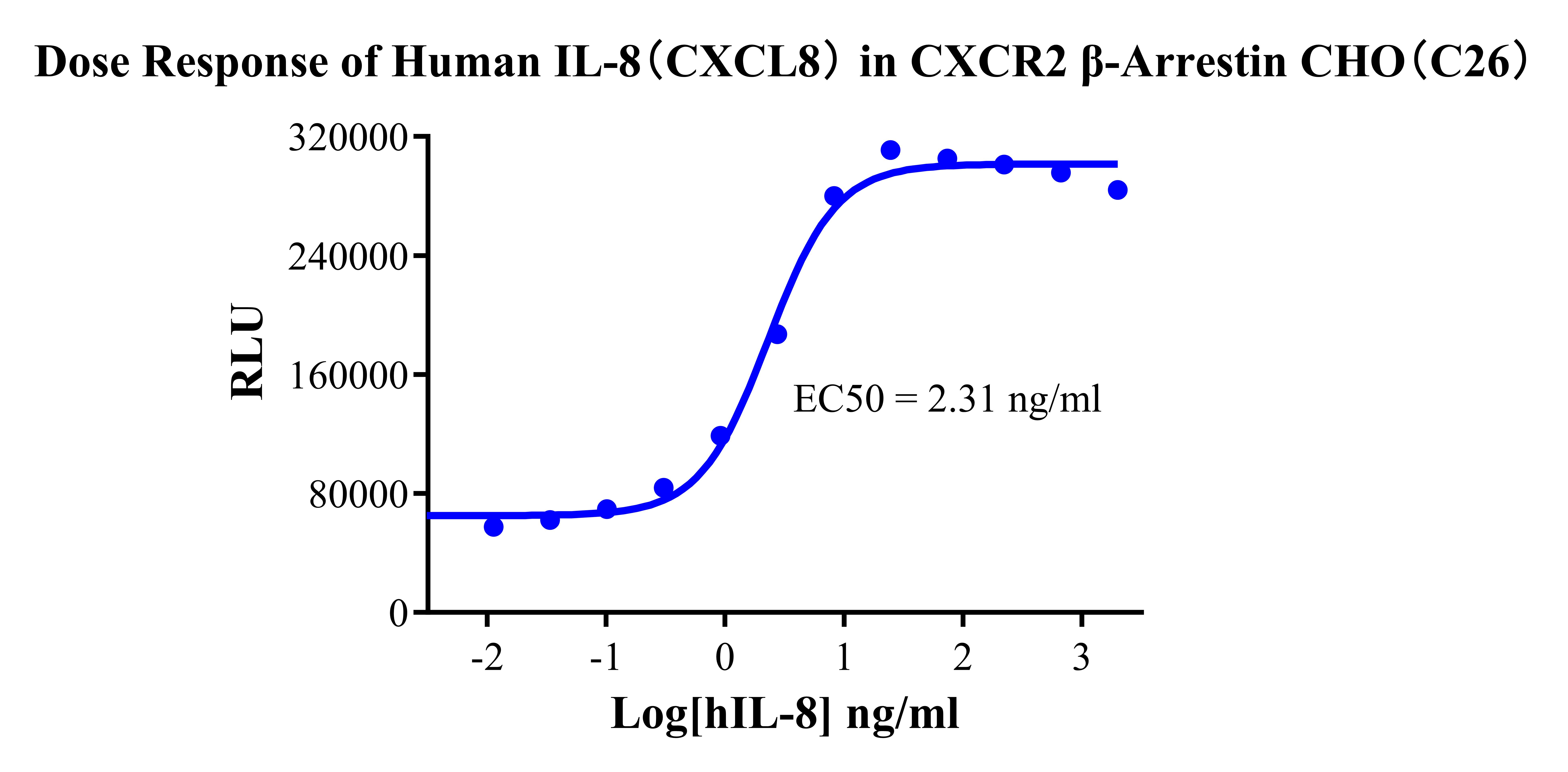 Figure 3.Dose response of Human IL-8(CXCL8) in CXCR2 β-Arrestin CHO (C26). |