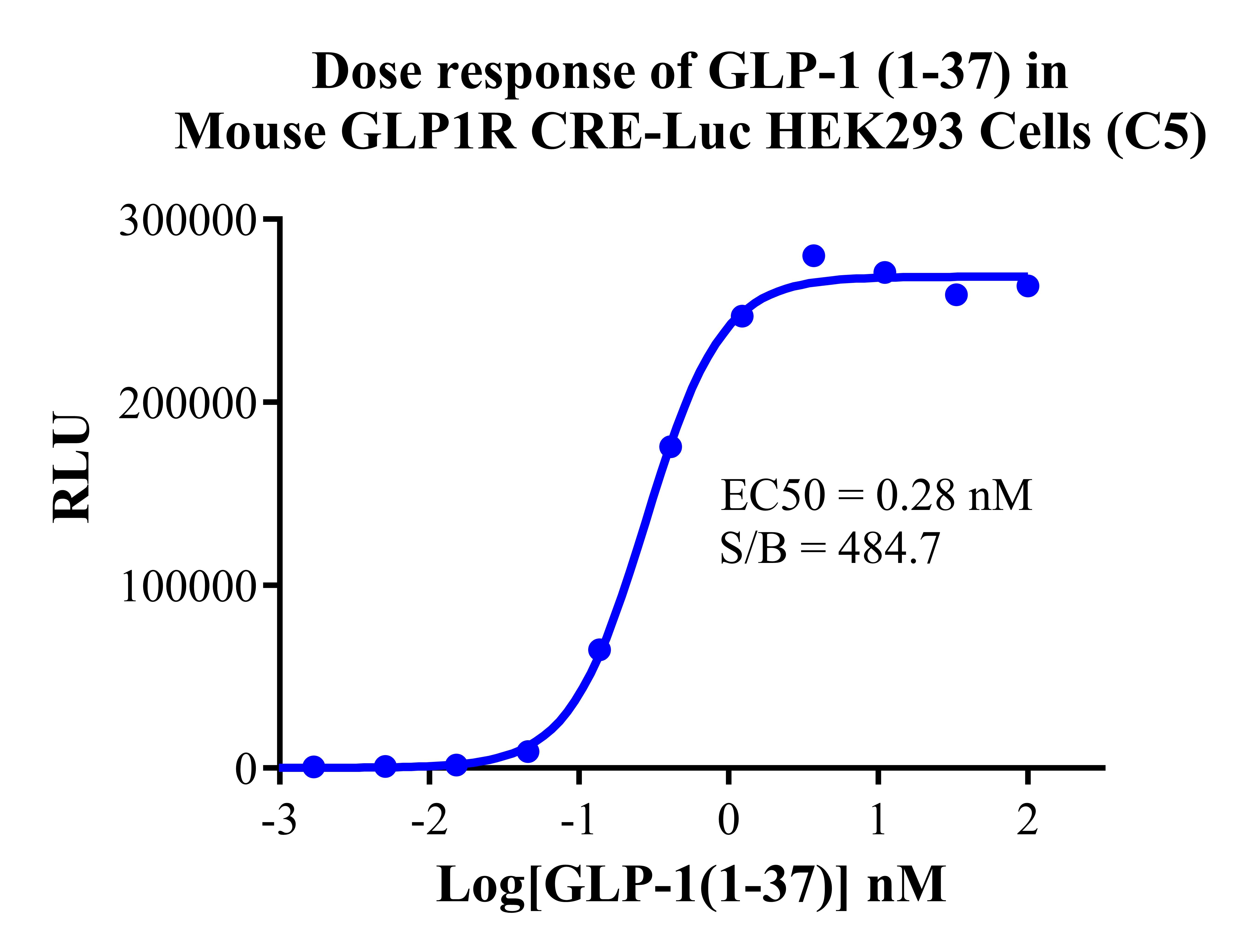 Figure 2. Dose response of GLP-1 (1-37) in Mouse GLP1R CRE-Luc HEK293 Cells (C5). |