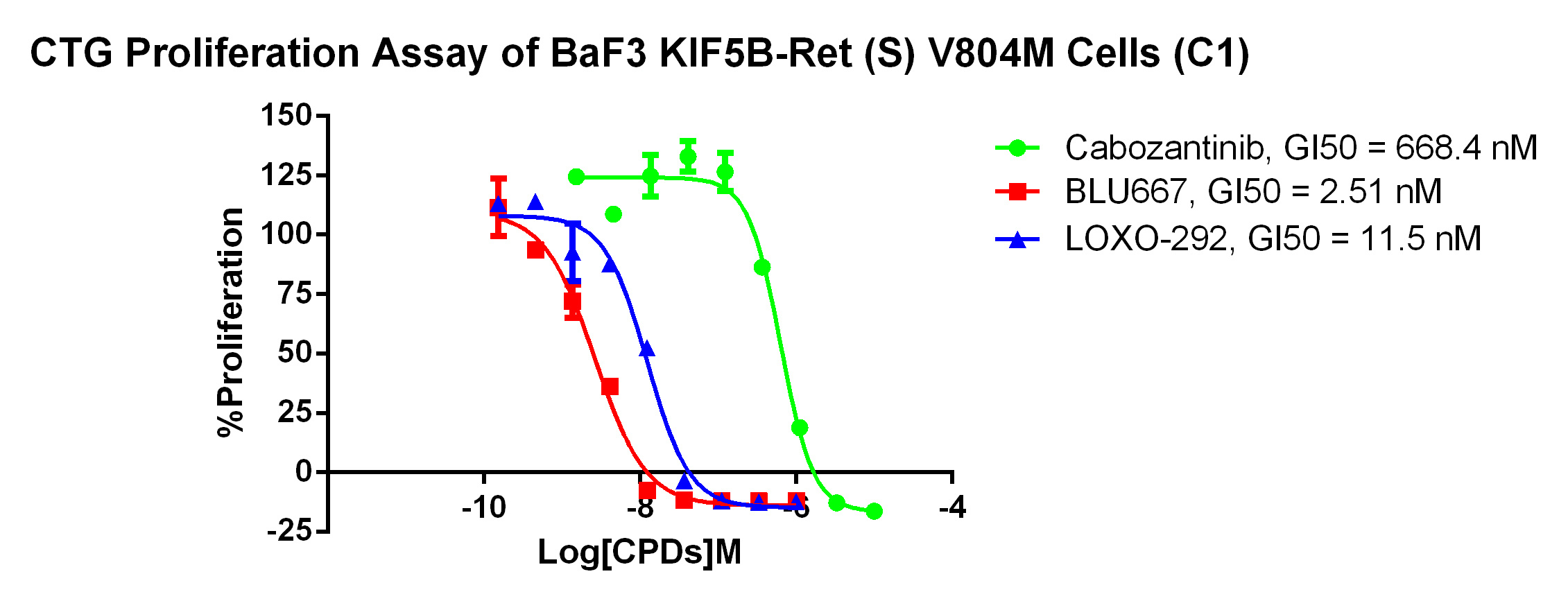 Figure 4. CTG Proliferation Assay of BaF3 KIF5B-Ret(S) V804M Cells (C1).