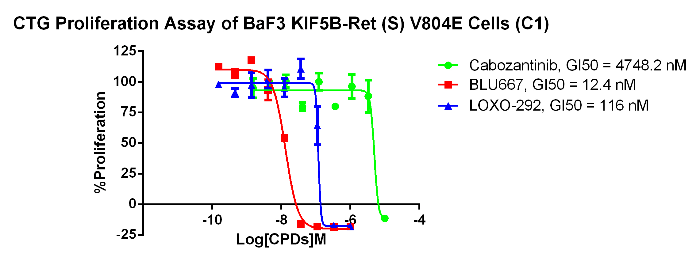 Figure 4. CTG Proliferation Assay of BaF3 KIF5B-Ret (S) V804E Cells (C1). |