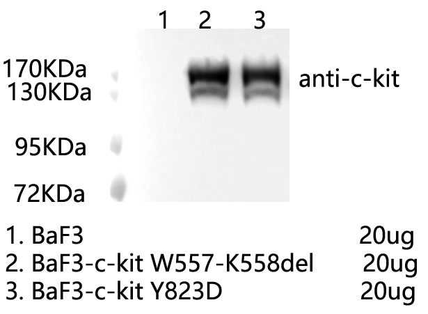 | KIT W557del results in the deletion of an amino acid in the juxtamembrane domain (exon 11) of the Kit protein at amino acids 557 (PMID: 12918066). W557del has not been characterized, however similar Kit exon 11 deletions are activating (PMID: 9438854, PMID: 9797363), and therefore, is predicted to lead to a gain of Kit protein function . | |