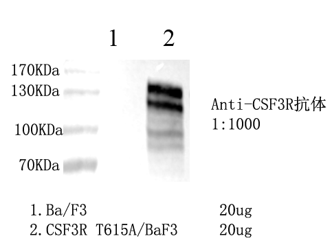 CSF3R T615A lies within the extracellular domain proximal to the transmembrane domain of the Csf3r protein (PMID: 23656643). T615A is predicted to confer a gain of function to the Csf3r protein, as demonstrated by increased proliferation of transformed cells in culture (PMID: 23656643). |