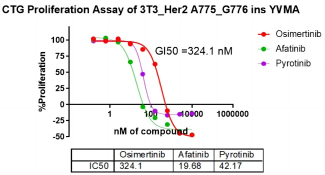 Figure 3. CTG Proliferation Assay of 3T3_Her2 A775_G776 ins YVMA. |