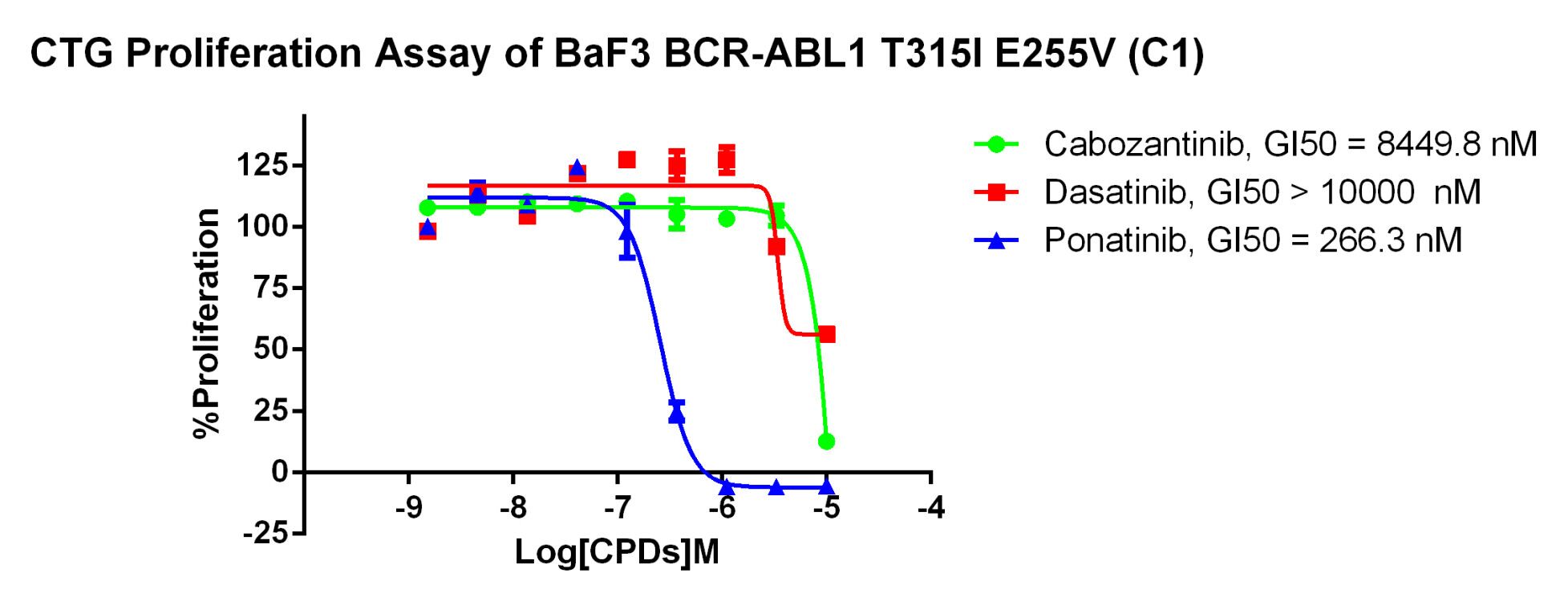 Figure 5. CTG Proliferation Assay of BaF3 BCR-ABL1 T315I E255V (C1). |