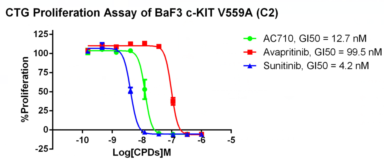 Figure 2. CTG Proliferation Assay of BaF3 c-KIT V559A (C2). |