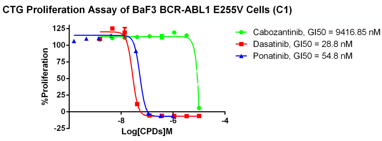 Figure 4. CTG Proliferation Assay of BaF3 BCR-ABL1 E255V Cells (C1). |