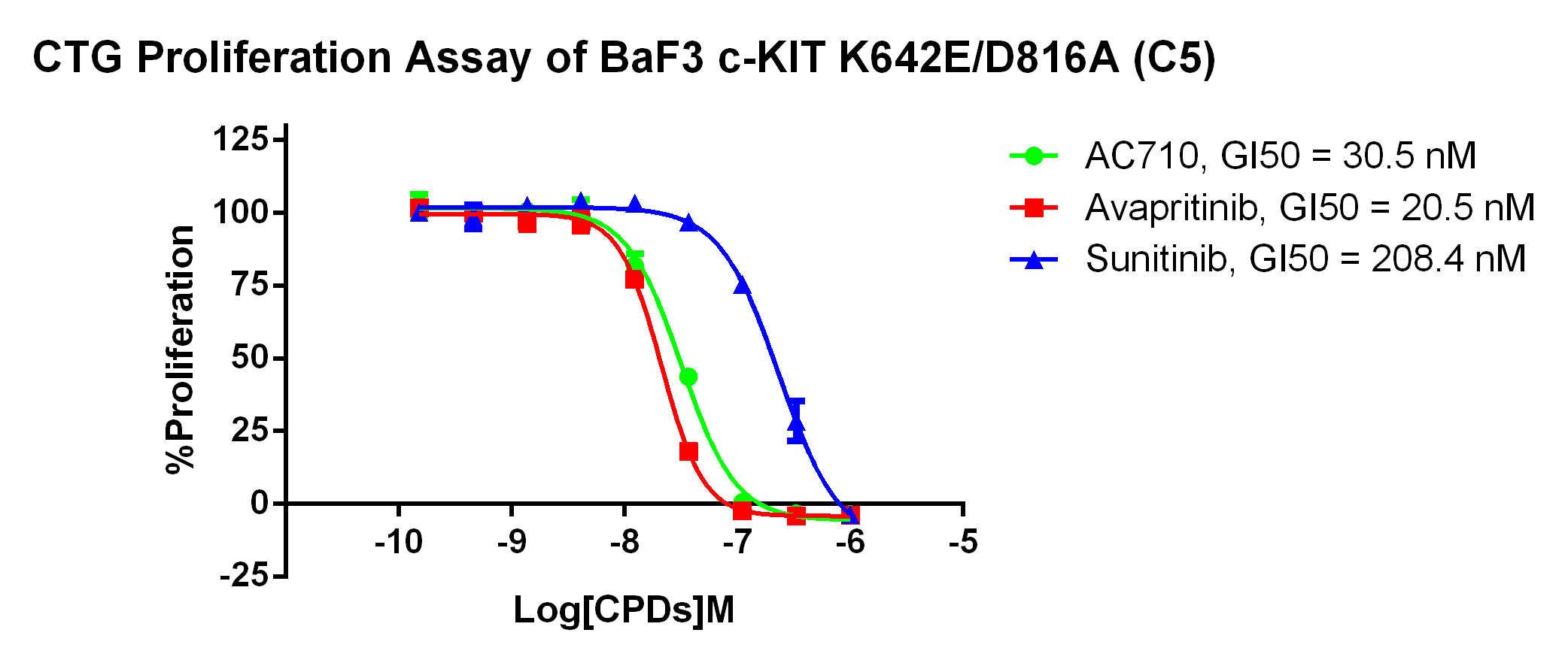 Figure 3.CTG Proliferation Assay of BaF3 c-KIT K642E/D816A (C5). |