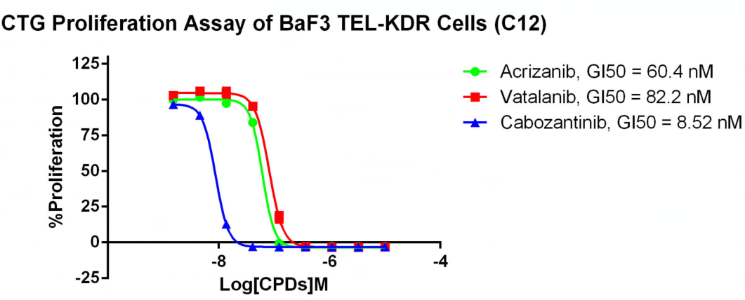 Figure 2. CTG Proliferation Assay of BaF3 TEL-KDR Cells (C12). |
