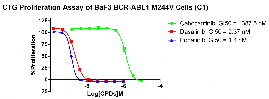 Figure 4. CTG Proliferation Assay of BaF3 BCR-ABL1 M244V Cells (C1). |