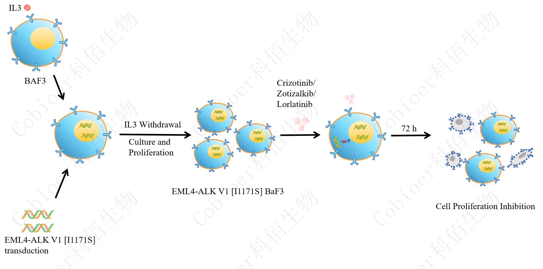 BaF3(小鼠原 B 細胞)的生長(cháng)和增殖需要 IL-3 的維持。通過(guò)引入各種表達激酶的基因, 能作為 BaF3 的驅動(dòng)基因,讓 BaF3 不再依賴(lài) IL-3 而增殖,進(jìn)而激酶基因成為 BaF3 增殖依 賴(lài)的驅動(dòng)基因,用于評估小分子藥物對激酶的靶向抑制作用,原理及流程見(jiàn)下圖所示。