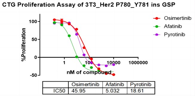 Figure 3. CTG Proliferation Assay of 3T3_Her2 P780_Y781 ins GSP. |