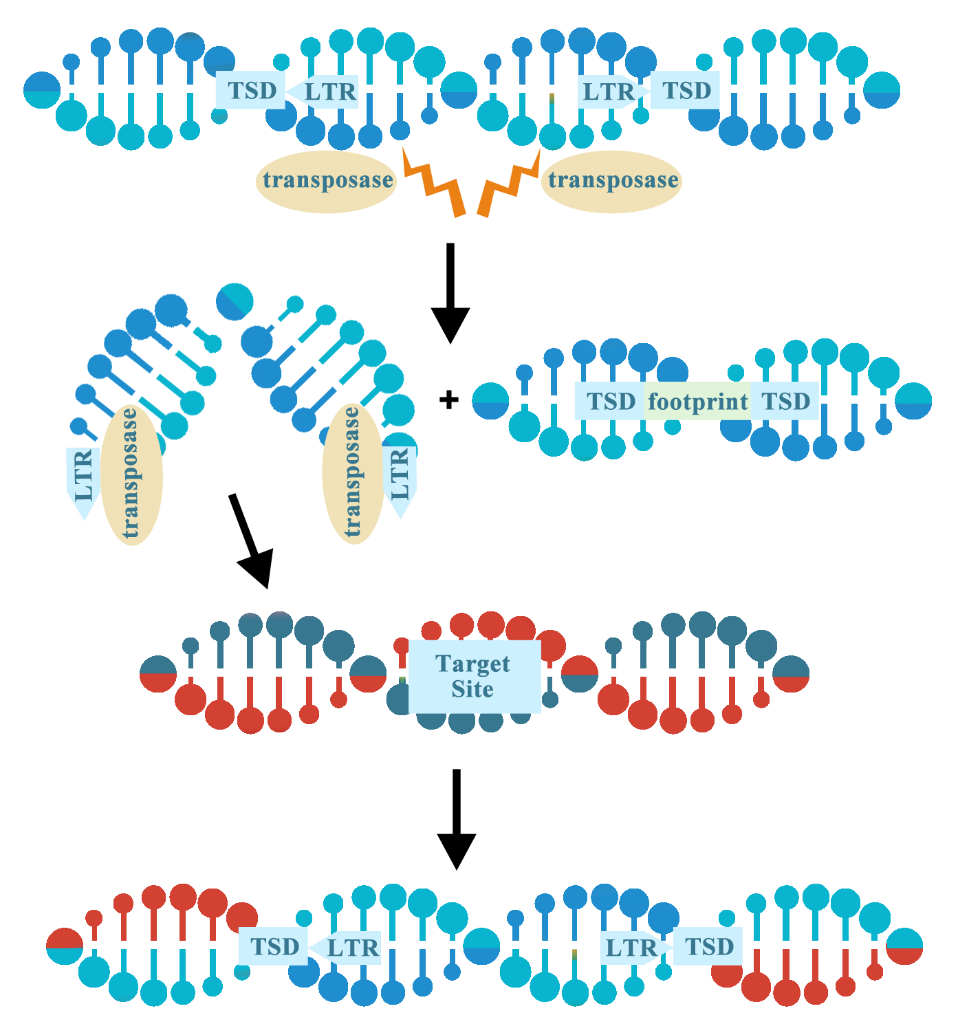 雖然轉(zhuǎn)座子有很多不同的類型,但DNA轉(zhuǎn)座子在實(shí)驗(yàn)室中用于基因組操作最為常見。在實(shí)驗(yàn)室中使用轉(zhuǎn)座子時(shí),轉(zhuǎn)座酶基因以反式形式提供,以便將目標(biāo)基因插入轉(zhuǎn)座子的長末端重復(fù)序列(LTR)之間,類似于病毒載體的包裝過程。
