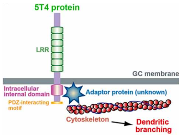 人類(lèi)和小鼠的5T4蛋白的同源性可達81%。大量的證據顯示5T4與不同的生理、病理過(guò)程密切相關(guān),如細胞間連接、細胞形態(tài)及運動(dòng)、細胞黏附能力、細胞膜的完整性等等。5T4廣泛表達于胚胎發(fā)育期的各種滋養層細胞,但在正常成人組織中表達極少,只在幾種上皮細胞中表達,但卻在很多癌癥細胞中有表達,包括結腸癌、胃癌、卵巢癌、口腔癌、前列腺癌、肺癌、腎癌、子宮癌等。這一特點(diǎn)使其成為了一種有吸引力的腫瘤免疫治療新靶點(diǎn)。