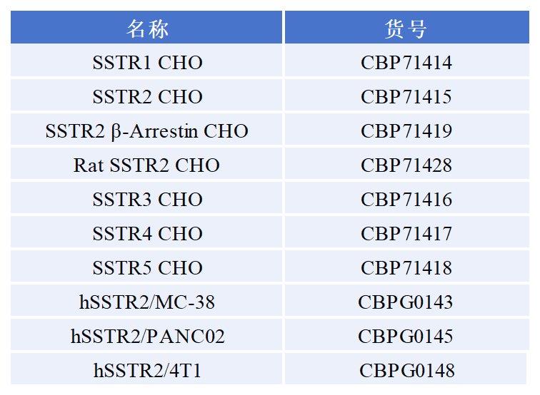 生長(cháng)抑素受體(Somatostatin receptor,SSTRs)是 GPCR 超家族中的Class A家族的成員,共有 5 種亞型,分別為SSTR1-SSTR5,其中SSTR2是唯一一種有SSTR2a和SSTR2b這2種異構體的SSTR亞型受體蛋白。SSTR2廣泛分布于正常組織中,如腦下垂體、胰島、腎上腺、胸腺、胃腸道以及免疫系統等,在不同受體的組織,表達譜各不相同。SSTR2 在神經(jīng)母細胞瘤、垂體腺瘤、黑色素瘤、甲狀腺癌以及許多神經(jīng)內分泌腫瘤中高表達。