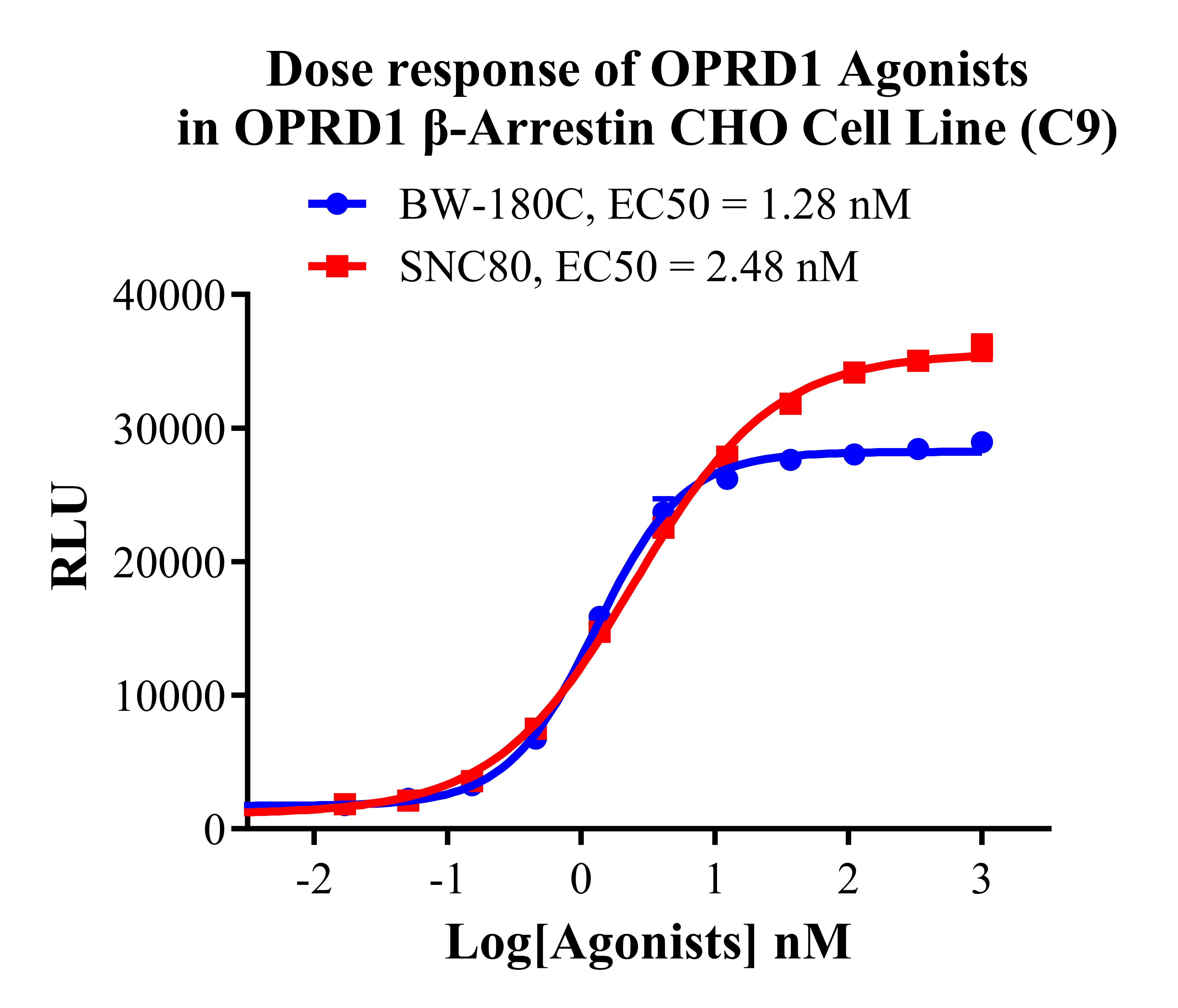 Figure 6. Dose response of OPRD1 Agonists in OPRD1 β-Arrestin CHO Cell Line (C9).
